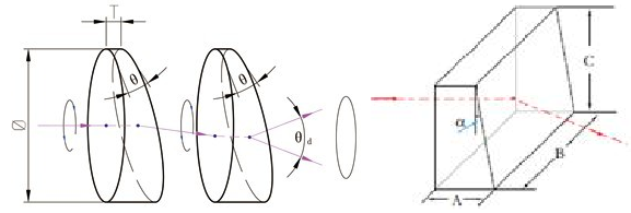 楔角棱镜可以使光束经过以后偏转一定角度,常用于如光开关等器件中。