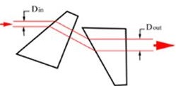 特殊用法:光束变形棱镜对,由一对光楔组成,当一束光经过该棱镜时,方向不会改变,但是光束直径会发生一定比例的变化。