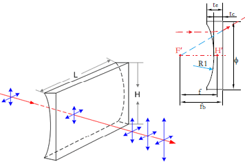 平凹柱面透镜成发散的线状虚像,用于仅需控制光束的一个方向的尺寸。